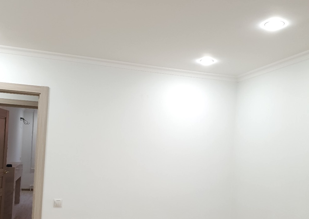 Установка точечных светильников в натяжной потолок
